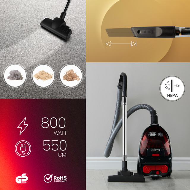 👉 У пилососі використовується триступенева система фільтрації, яка ефективно затримує весь бруд. Завдяки цьому бактерії і пил залишаються в контейнері, який необхідно спорожнити, і не потрапляють назад у повітря.