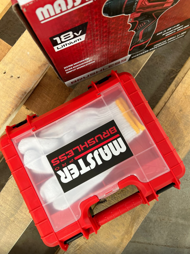 ✔️ Компактний набір дрилів/шурупокрутів MAJSTER POLSKA Pro з 1 акумуляторною батареєю, зарядним пристроєм і функцією удару. Все упаковано в практичний кейс для перенесення.